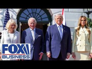 President Donald Trump and First Lady Melania Trump participate in a final farewell to King Charles and Queen Camilla at the White House.. #foxbusiness #us