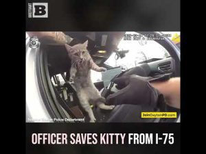 The Dayton Police Department out of Ohio released footage showing an officer saving an injured cat from the busy I-75 interstate and bringing the feline