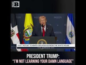 While speaking at the Shield of Americas summit in Miami, Florida, President Trump joked, “I’m not learning your damn language,” to the Latin American leaders